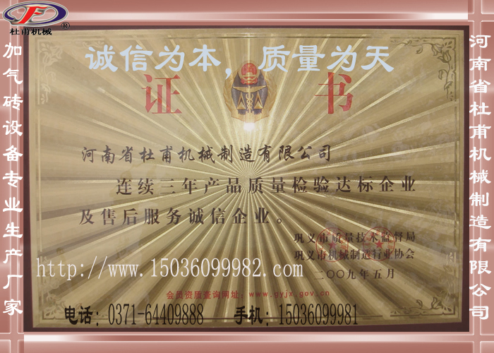 杜甫人艱苦堅實、誠信承諾、實干實效;以艱苦的作風打拼堅實的企業基礎;以誠實的信念承諾一流的企業服務;實干的精神創造高效的企業業績。公司本著誠信為本、質量為天的企業理念,為創造一流的企業、創一流的管理、創一流產品、創一流效益,打造優質品牌,不斷發展壯大,貢獻一份真情和薄利。激烈的競爭市場,每個品牌都在不斷的尋找更大的市場,中國加氣磚設備行業可持續發展,給各大企業都來了一個新的更大的市場范疇,也讓他們各自的經營理念得到了升華。