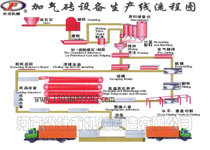 在不考慮運輸工序的情況下,加氣磚設備相同于化學生產的工藝流程如下: