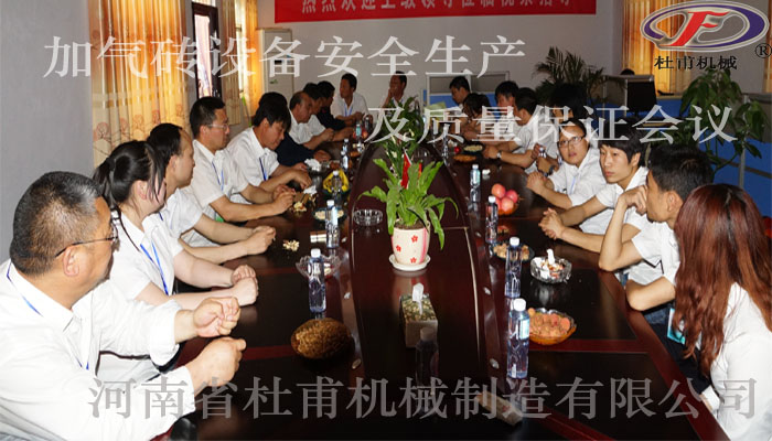 一走進杜甫機械的生產車間,你就會看到每一個方向在十分醒目的地方都掛有安全生產的標語橫幅。讓每一個人抬頭間都能看到這些標語,是為了更好的保證加氣磚設備的安全生產,時刻提醒大家,要注意自身的安全。今天又是安全例會日,除了強調安全生產之外,李總還強調了我們一直都在重點抓、時時抓的質量問題。