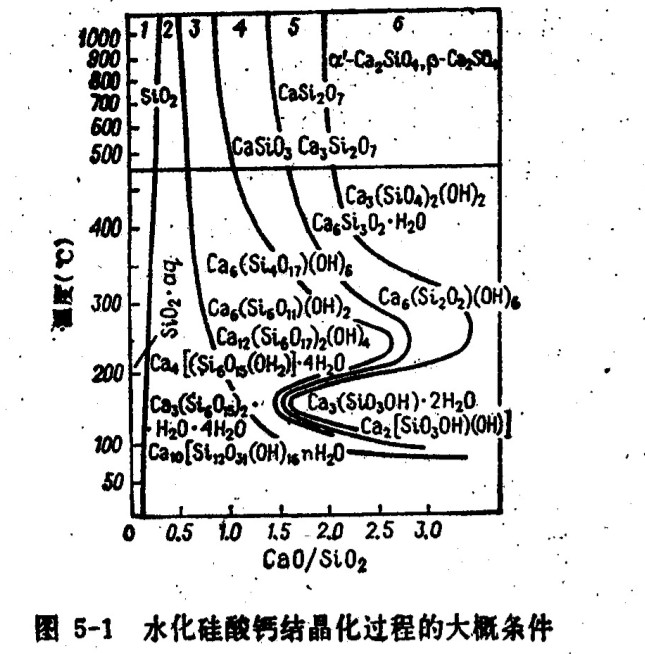 當蒸壓釜內的溫度和壓力變化時,有很多亞穩態的、不穩定的相生成和消失。如果水硅鈣石能很好的結晶,則它只有在低溫和剩余Ca(OH)2的情況下是穩定的。壓力加大到30MPa以上也不會明顯影響水化硅酸鈣穩定生成的條件。還認識,長時間的反應過程能促使新生成物的穩定化。