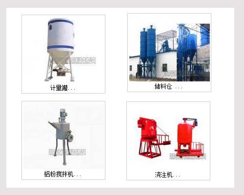 原料儲備儲備倉,料漿計量稱,鋁粉攪拌機,固定式澆注機,移動式澆注車等。