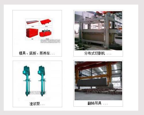 模具,側(cè)板,蒸養(yǎng)車,翻轉(zhuǎn)吊具,切割機組,渣漿泵等。