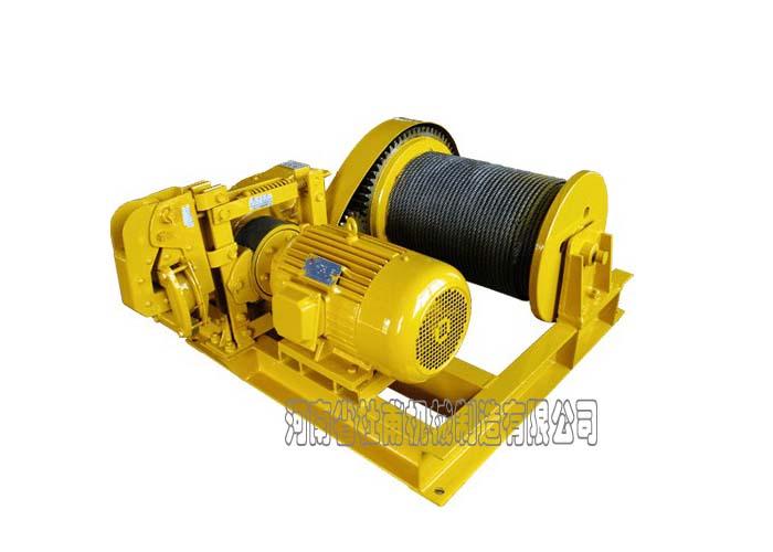| 卷揚機(又叫絞車)是由人力或機械動力驅動卷筒、卷繞繩索來完成牽引工作的裝置。可以垂直提升、水平或傾斜拽引重物。卷揚機分為手動卷揚機和電動卷揚機兩種。現在以電動卷揚機為主.電動卷揚機由電動機、聯軸節、制動器、齒輪箱和卷筒組成,共同安裝在機架上.對于起升高度和裝卸量人工作頻繁的情況,調速性能好,能令空鉤快速下降。對安裝就位或敏感的物料,能用較小速度。 |