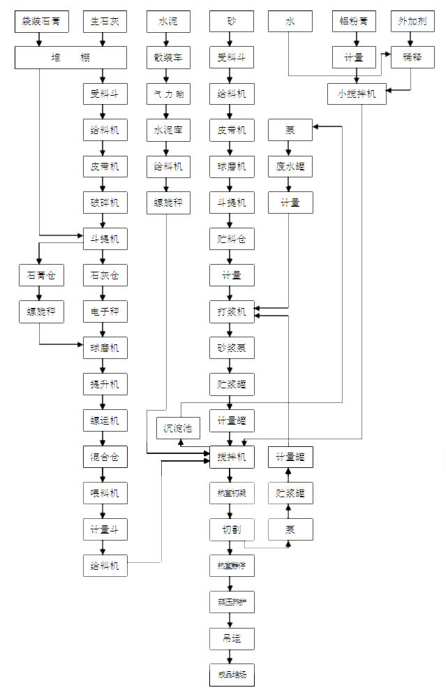砂、生石灰、石膏、水泥、鋁粉膏和穩泡劑等。