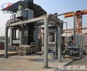 澆注后模具用輸送鏈推入初養室進行發氣初凝,室溫為50~70℃,初養時間為1.5-2小時(根據地理有利條件,可免去此工藝),初養后用負壓吊具將模框及坯體一同吊到預先放好釜底板的切割臺上.脫去模框.切割機即對坯體進行橫切、縱切、銑面包頭,模框吊回到運模車上人工清理和除油,然后吊到模車上組模進行下一次澆注,切好后的坯體連同釜底板用天車吊到釜車上碼放兩層,層間有四個支撐,若干個釜車編為一組。切割時產生的坯體邊角廢料,經螺旋輸送機送到切割機旁的廢漿攪袢機中,加水制成廢料漿,待配料時使用。