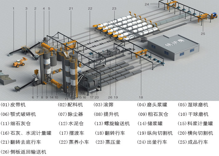 加氣混凝土設(shè)備生產(chǎn)線主要設(shè)備: